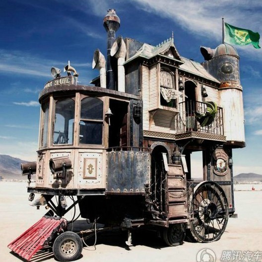這個(gè)房車(chē)就有點(diǎn)老式馬車(chē)的感覺(jué)了,也有一點(diǎn)童話(huà)劇的風(fēng)格。
