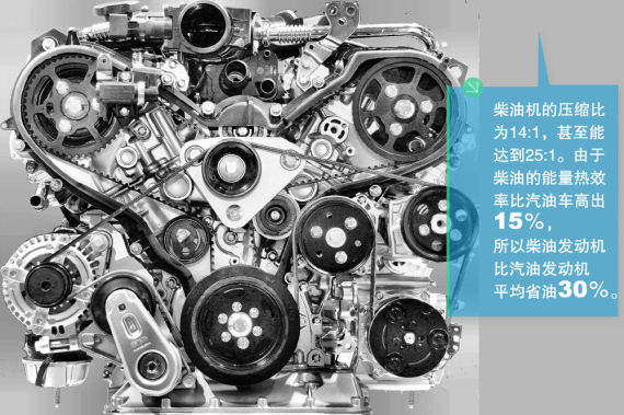 而柴油機(jī)這方面具有先天的優(yōu)勢,柴油機(jī)直接壓縮空氣,因此壓縮比可比汽油機(jī)高出許多。汽油機(jī)的壓縮比為8:1至12:1,而柴油機(jī)的壓縮比為14:1,甚至能達(dá)到25:1。由于柴油機(jī)具有更高的壓縮比,因此效率也更高也不是一般的省油,由于柴油的能量熱效率比汽油車高出15%,所以柴油發(fā)動機(jī)比汽油發(fā)動機(jī)平均省油30%。