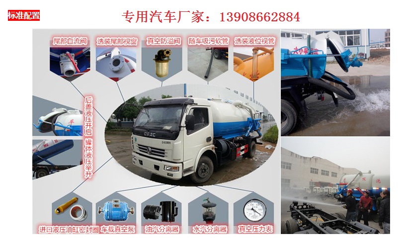 吸污車核心設置則包括:真空罐體,油水分離器,水氣分離器,專用真空吸糞泵,連通器(視糞窗),容積壓力表,管網(wǎng)系統(tǒng),吸物導管,全自動防溢閥,自流閥等組成。